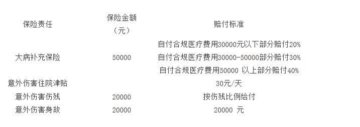 3、意外伤害身故、伤残20000元保障。伤残根据伤残等级按比例赔付,投保前已有的残疾不属于赔付责任范围。
