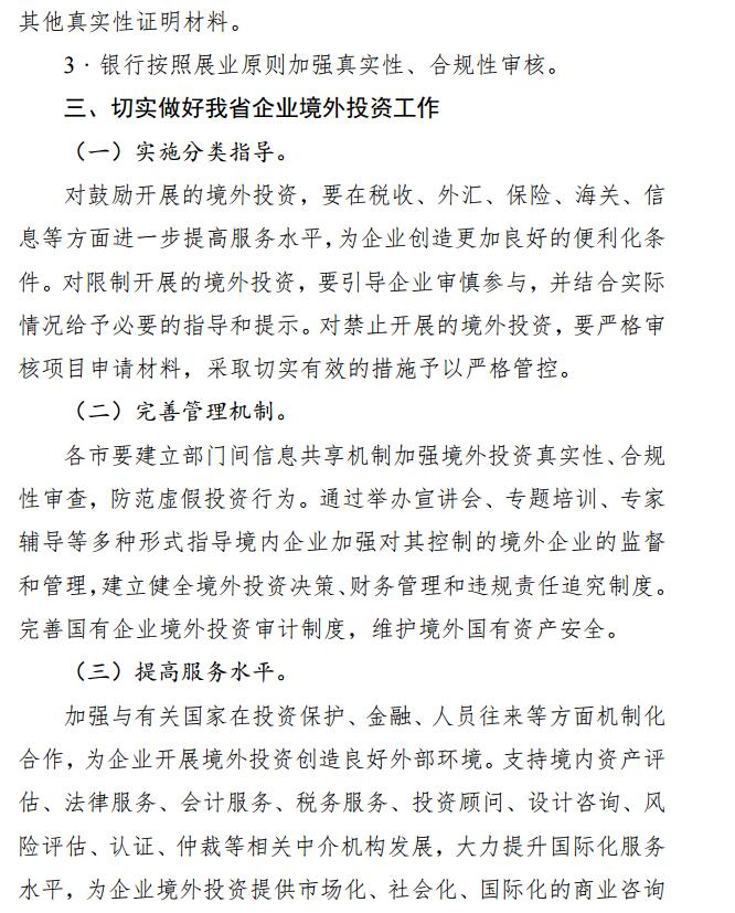 江苏省关于进一步规范企业境外投资的通知苏政办发[2017]142号:http://www.3jise.com/article/101227.html