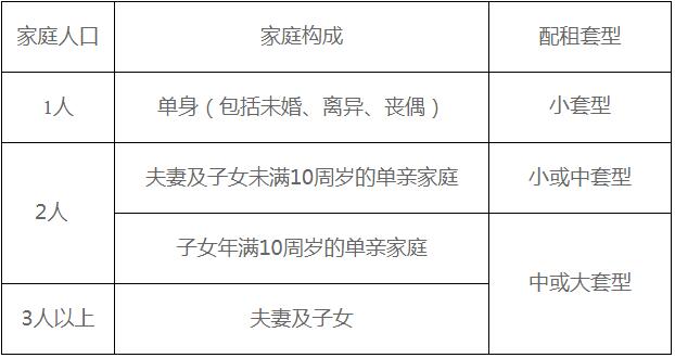 登记套型:按下列标准,配租套型为小或中套型的保障房轮侯家庭可参加本次配租登记。