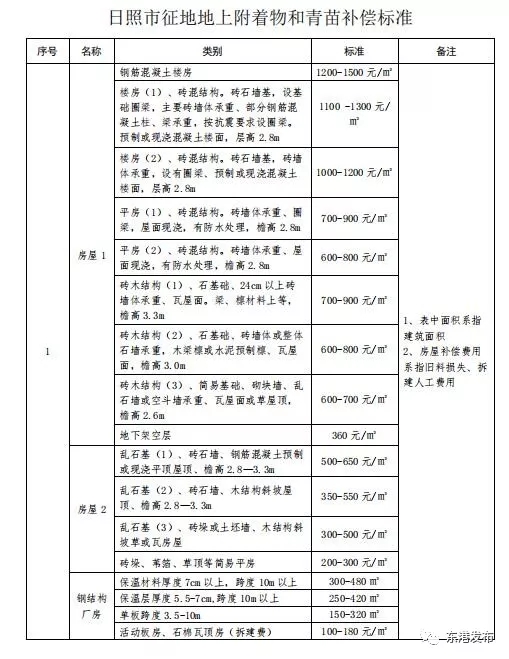 记者1月3日从山东省国土资源厅获悉,2017年12月29日,山东省国土资源厅、省财政厅批复同意了潍坊、威海、东营、德州、济宁、日照等6市新修订的征地地上附着物和青苗补偿标准。日照最新的征地地上附着物和青苗补偿标准获批复。