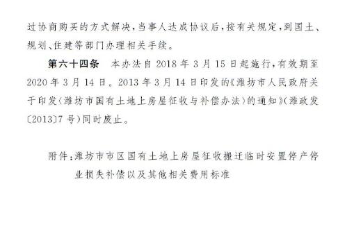 新山东省《潍坊市国有土地上房屋征收与补偿办法》2018年3月15日实施:http://www.3jise.com/article/104635.html