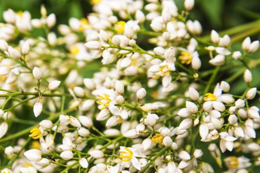 南天竹浇水应见干见湿。干旱季节要勤浇水,保持土壤湿润;夏季每天浇水一次,并向叶面喷雾2~3次,保持叶面湿润,防止叶尖枯焦,有损美观。开花时尤应注意浇水,不使盆土发干,并于地面洒水提高空气湿度,以利提高受粉率。冬季植株处于半休眠状态,不要使盆土过湿。浇水时间,夏季宜在早、晚时行,冬季宜在中午进行。南天竹在生长期内,细苗半个月左右施一次薄肥(宜施含磷多的有机肥)。成年植株每年施三次干肥,分别在5、8、10月份进行,第三次应在移进室内越冬时施肥,肥料可用充分发酵后的饼肥和麻酱渣等。施肥量一般第一、二次宜少,第三次可增加用量。在生长期内,剪除根部萌生枝条、密生枝条,剪去果穗较长的枝干,留1、2枝较低的枝干,以保株型美观,以利开花结果。