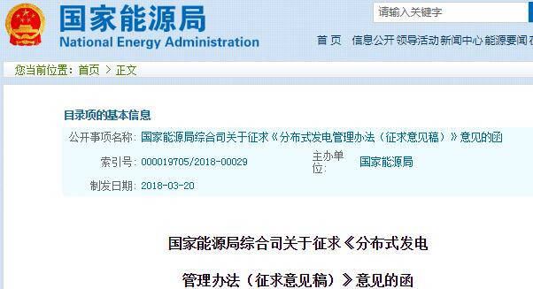3月20日,国家能源局综合司关于《分布式发电管理办法(征求意见稿)》本办法所指分布式发电是指接入配电网运行,发电量就近消纳的中小型发电设施,以及有电力输出的能源综合利用系统。