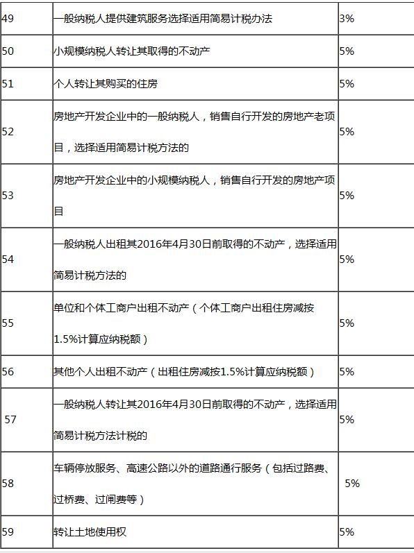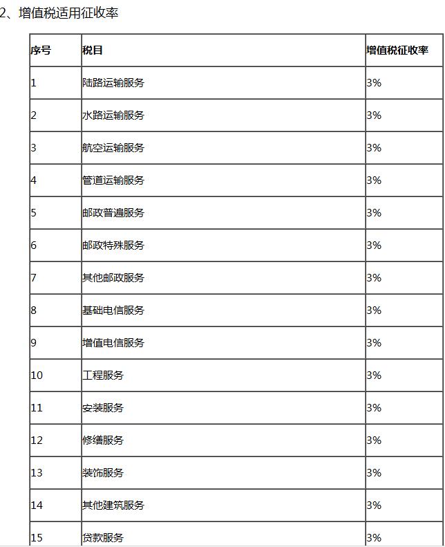 2、除了10%正列举的服务和有形动产的租赁服务的其他服务,适用6%;