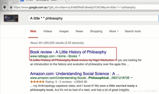 如何搜索短语或引用缺失的词语。简单地用星号作为所有缺失单词的占位符,就在昨天,我推荐了一本关于哲学的书,叫做,《a little something something philosophy》,但当我在谷歌上输入时,它找不到正确的书。只要輸入 “a little ** philosophy”,谷歌会根据占位符返回正确的结果。