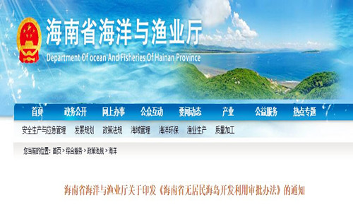 海南省海洋与渔业厅7月4日公布《海南省无居民海岛开发利用审批办法》,明确了一项新的土地规定,即个人可以申请开发无人海岛可用于养殖、旅游、盐矿等行业。