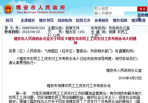 《雅安市农民工工资支付工作考核办法》的通知:http://www.3jise.com/article/122755.html