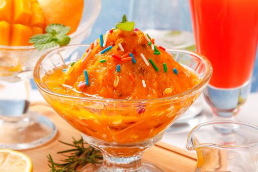 材料:释迦果1个、柑橘1个、炼乳、蜂蜜、清酒各适量。