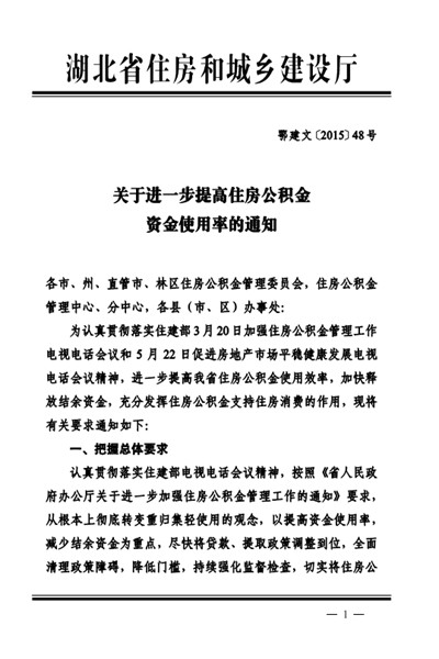 2015湖北《关于进一步提高住房公积金资金使用率的通知》:http://www.3jise.com/article/13141.html