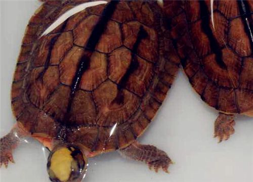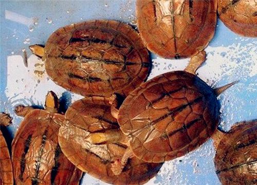 广东种金钱龟价格最低,壳色扁淡,肉色不红,个体偏小,产蛋更少,一般3粒左右。