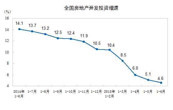 统计局:2015上半年房地产投资43955亿元,同比增长4.6%:http://www.3jise.com/article/14801.html