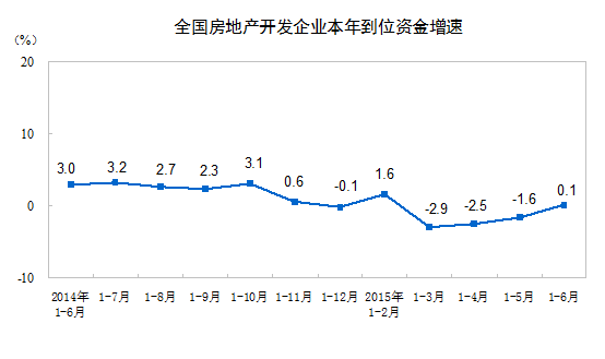 2015年1-6月份,全国房地产开发投资43955亿元,同比名义增长4.6%(扣除价格因素实际增长5.7%),增速比1-5月份回落0.5个百分点。其中,住宅投资29506亿元,增长2.8%,增速回落0.1个百分点。住宅投资占房地产开发投资的比重为67.1%。