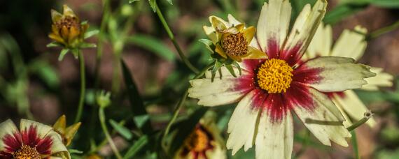2.金鸡菊开的花比较鲜艳,到了冬季时,叶子会常绿不凋谢,且幼叶萌生,鲜绿成片,既可观叶也可观花,可在草地边缘、向阳坡地、林场成片栽植。