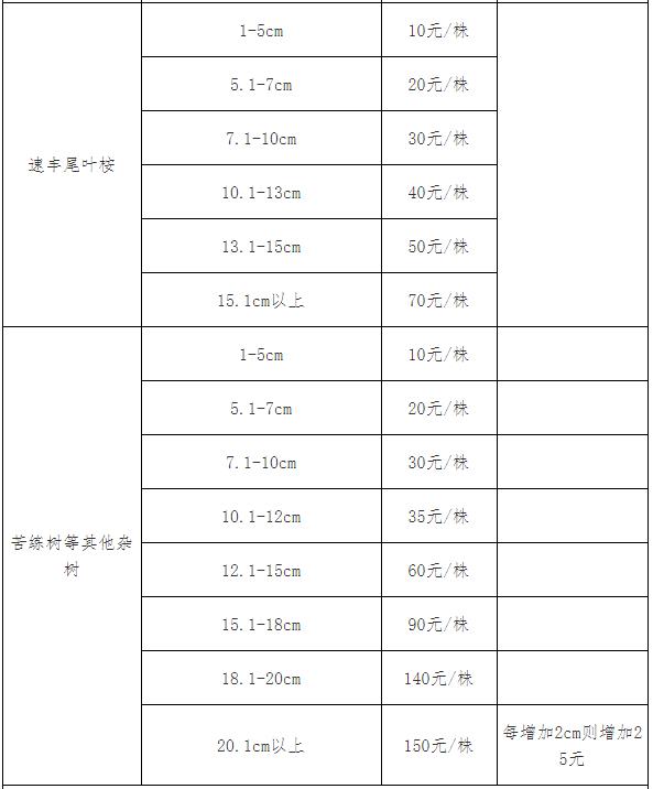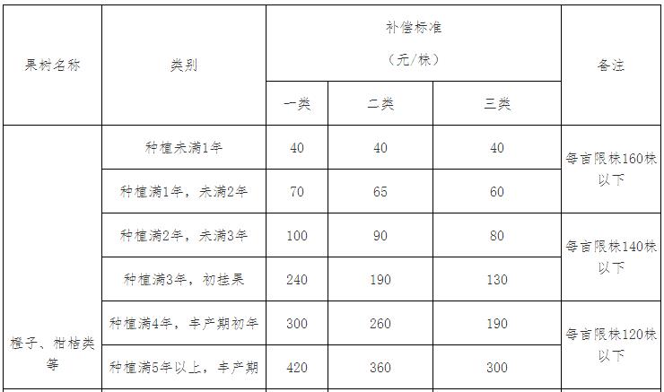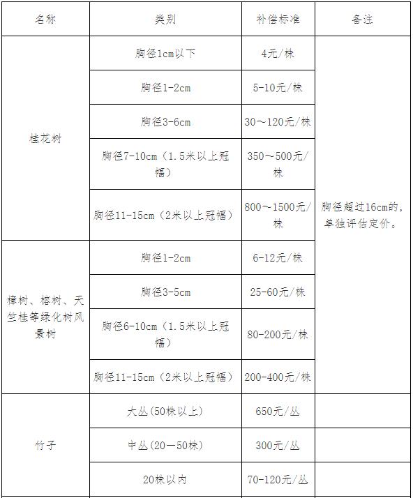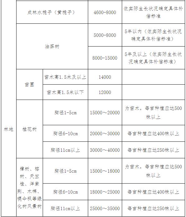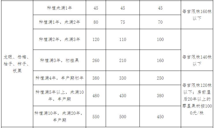 注:本补偿标准没有列出的果木、树木,可参照相关规定或近似的果木、苗木核定补偿标准。