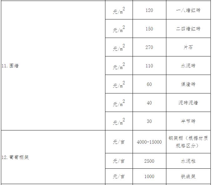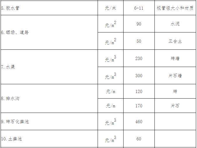 4. 以上附着物应符合一般种植密度,否则按一般种植密度比例进行折算。