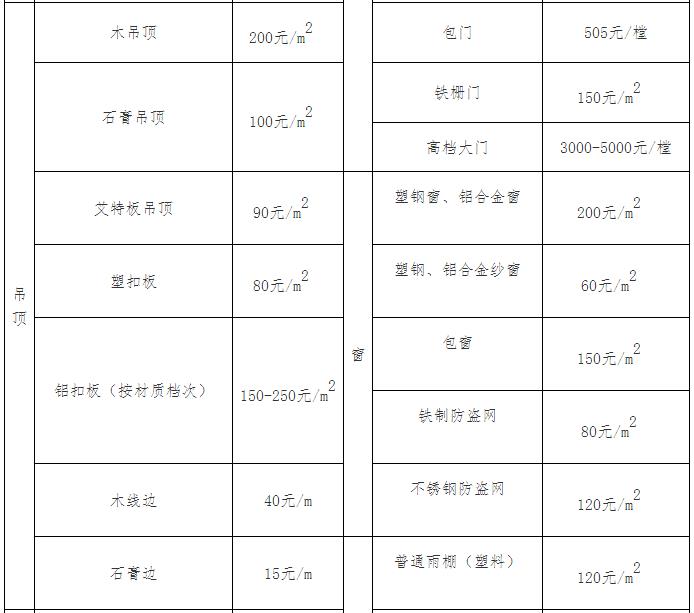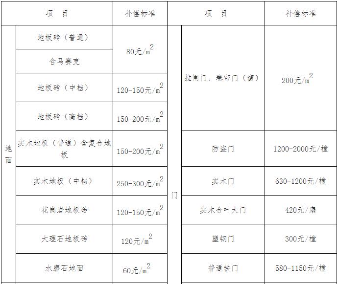 2.铁门(规格90×195cm)一栏,超规格部分进行折算补偿;