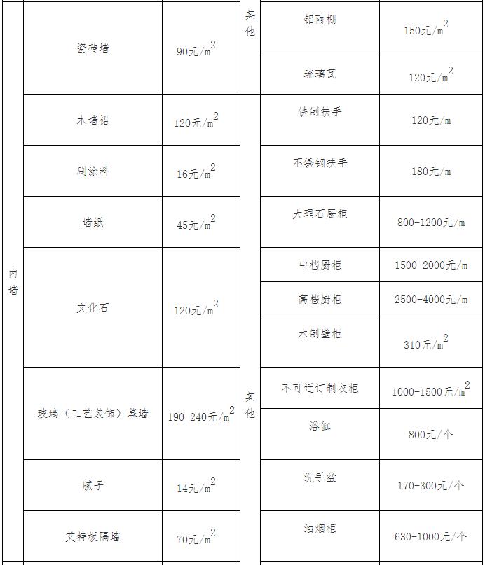 注:表中未列入设施项目可根据实际情况参考市场价进行测算。