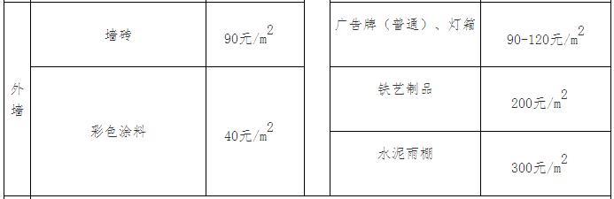 备注:1.表中价格已包含成新、工料等费用;