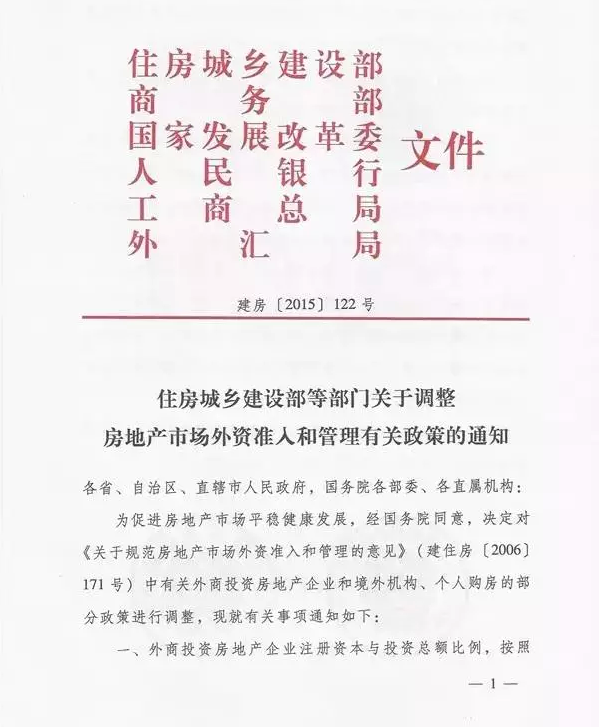2015《关于规范房地产市场外资准入和管理的意见》 调整:http://www.3jise.com/article/16647.html