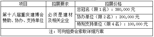 第十八届重庆建博会重庆建博会赞助、协办、支持单位费用: