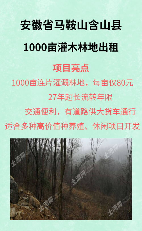 安徽马鞍山含山县1000亩灌木林地诚心出租!