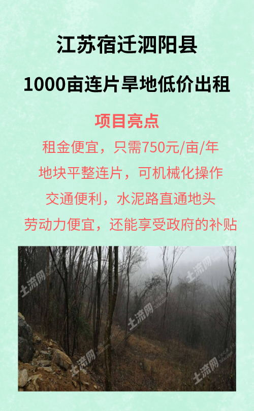 江苏宿迁泗阳县1000亩连片旱地低价出租!