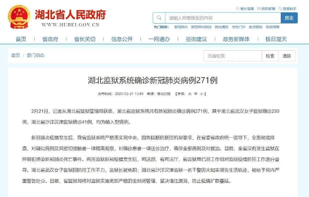 湖北监狱系统确诊271例病例,女子监狱监狱长被免职:http://www.3jise.com/article/175087.html