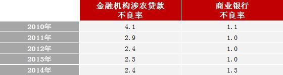 从金融机构不良贷款率来看,具有代表性的商业银行不良贷款率在1%左右。去年有所上升,达到了1.25%。但全部金融机构涉农贷款的不良率接近它的两倍,高达2.4%。这其中还包括了大型农业企业的贷款,所以农村小微金融的不良率会更高。