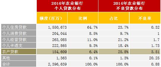 有一种可能,这也许是因为商业银行之外的涉农金融机构风控水平不足造成的,那我们拿国有大型商业银行中具有代表性的农业银行做一个剖析,就会排除这个理由。