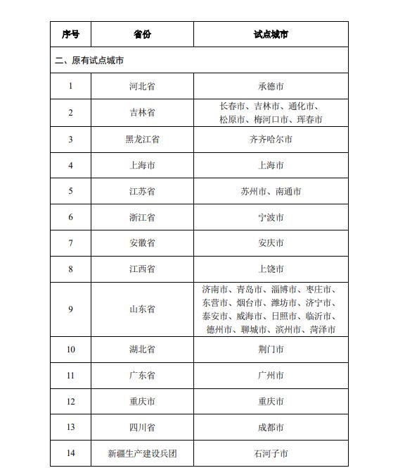 (十)扩大试点范围。人力资源社会保障部原明确的试点城市和吉林、山东2个重点联系省份按本意见要求继续开展试点,其他未开展试点的省份可新增1个城市开展试点,于今年内启动实施,试点期限2年。未经国家医保局和财政部同意,各地不得自行扩大试点范围。