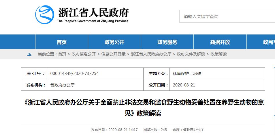 现就《浙江省人民政府办公厅关于全面禁止非法交易和滥食野生动物妥善处置在养野生动物的意见》(以下简称《意见》)相关政策解读如下: