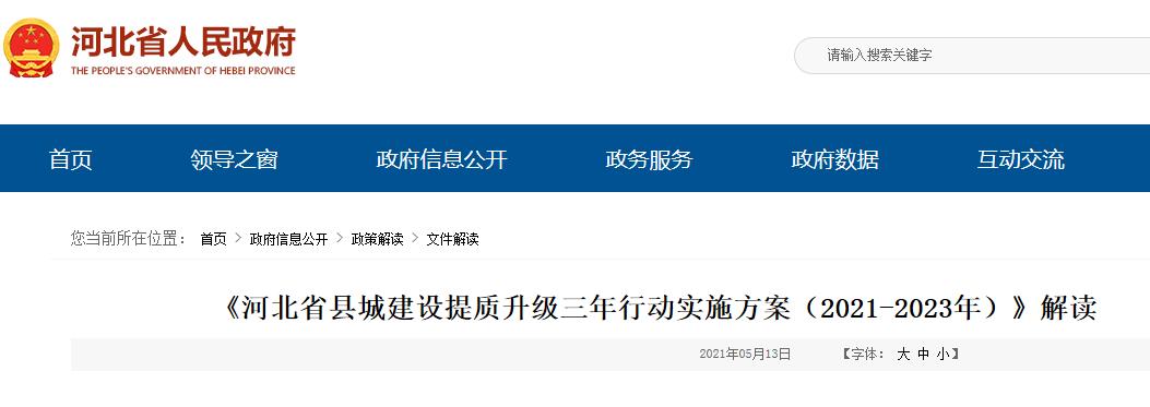 为贯彻落实省委九届十一次全会和全省“两会”精神,切实提升全省县城综合承载能力和功能品质,2021年5月6日,省政府办公厅印发了《河北省县城建设提质升级三年行动实施方案(2021-2023年)》(以下简称《实施方案》)。