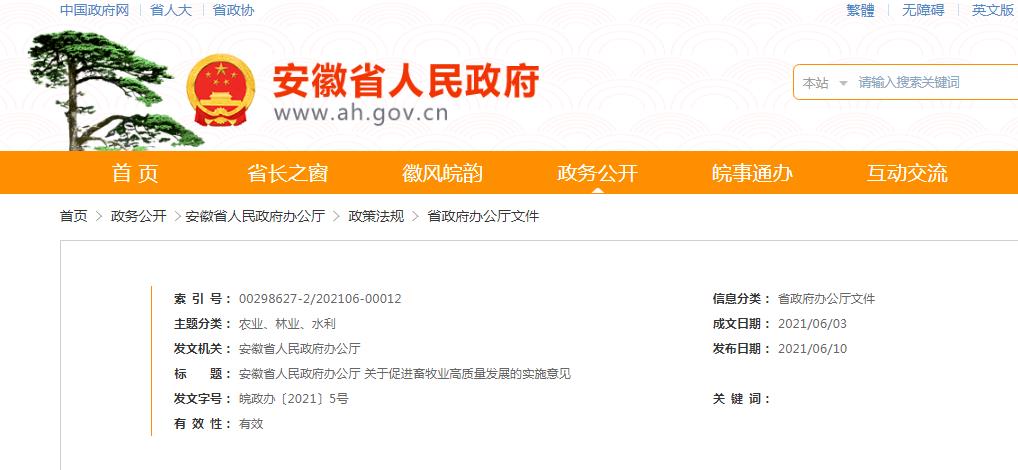 安徽省人民政府办公厅关于促进畜牧业高质量发展的实施意见:http://www.3jise.com/article/183355.html