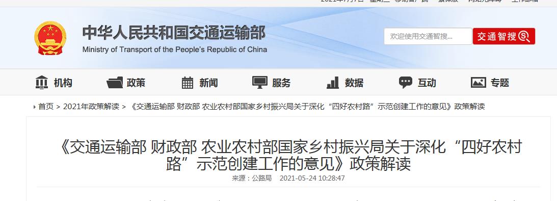 《交通运输部财政部农业农村部国家乡村振兴局关于深化“四好农村路”示范创建工作的意见》政策解读:http://www.3jise.com/article/184001.html