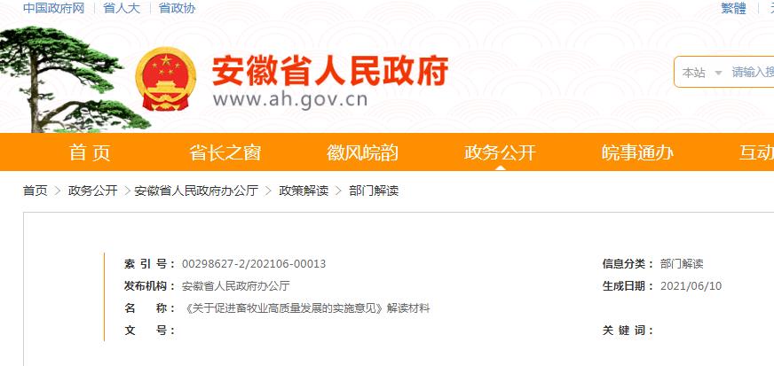 安徽省人民政府《关于促进畜牧业高质量发展的实施意见》解读:http://www.3jise.com/article/184178.html