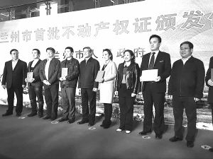 昨日上午,在兰州市不动产登记局政务大厅,举行了甘肃省首批不动产权证书颁发仪式。兰州作为省会城市,在全国率先颁发了不动产权证书,实现了“关旧开新”、持续发证,兰州市共颁发全省首批不动产权证1000余本;当天同时在白银市、榆中县、临泽县、古浪县颁发甘肃省第一批不动产权证书。