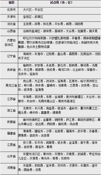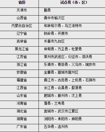 农村承包土地的经营权抵押贷款试点县(市、区)名单