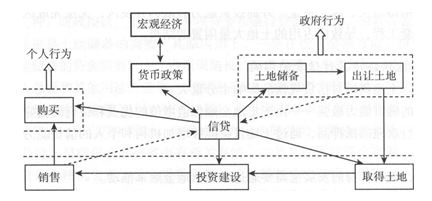 首先,政府储备土地,然后出让土地;企业从政府手中获取土地,进行必要的投资建设,然后进行租售;消费者通过购买,获得建成后的房地产产品。