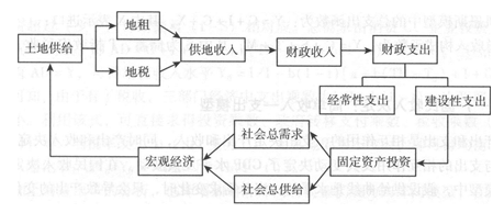 土地供给财政传导渠道的传导过程是:土地供给规模增加或土地招、拍、挂占供地比重增加,通过地租和地税的增加传导到土地供给收入的增加,增加的供地收入导致地方财政收入增加,相应的财政支出规模增加,主要体现为财政支出中的建设性支出的增加,建设性投资通过投资过程中引起的社会总需求增加、投资建成后引起的社会总供给增加,带动宏观经济的增长。在土地供给规模减少或土地招、 拍、出让程度降低时,整个传导过程全部相应减少。