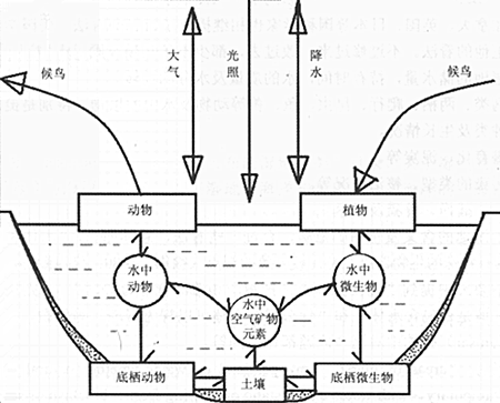 湿地的水与生物,是湿地最重要的成分,也是湿地的重要资源。湿地的环境使湿地的生物与环境形成了独特的生态系统,它既不是陆地系统那么简单,也不如水系统那么特殊,它有两者间过渡的性质,但又不是仅仅过渡,而是更复杂和更另类的系统。