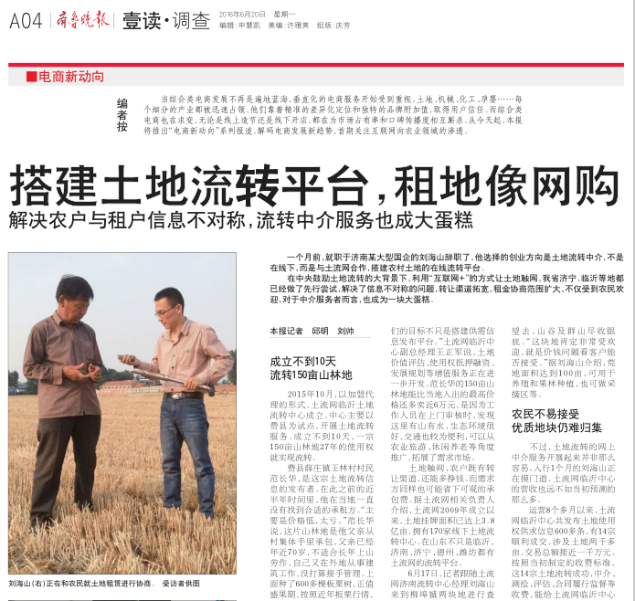 齐鲁晚报专题报导土流网济南历城流转中心:http://www.3jise.com/article/53206.html