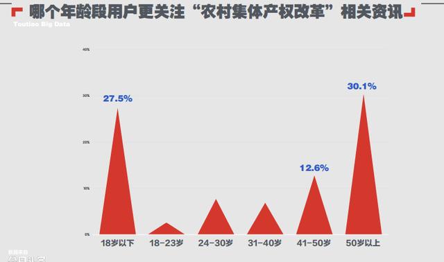 今日头条刚刚就农村集体产权改革发布了一组大数据,“一老一小”居然是关注该热门话题的最大两个阅读群体。“一老”指50岁以上,“一小”小至何种程度呢? 18岁以下!这组数据取样于2015年11月至2016年5月。