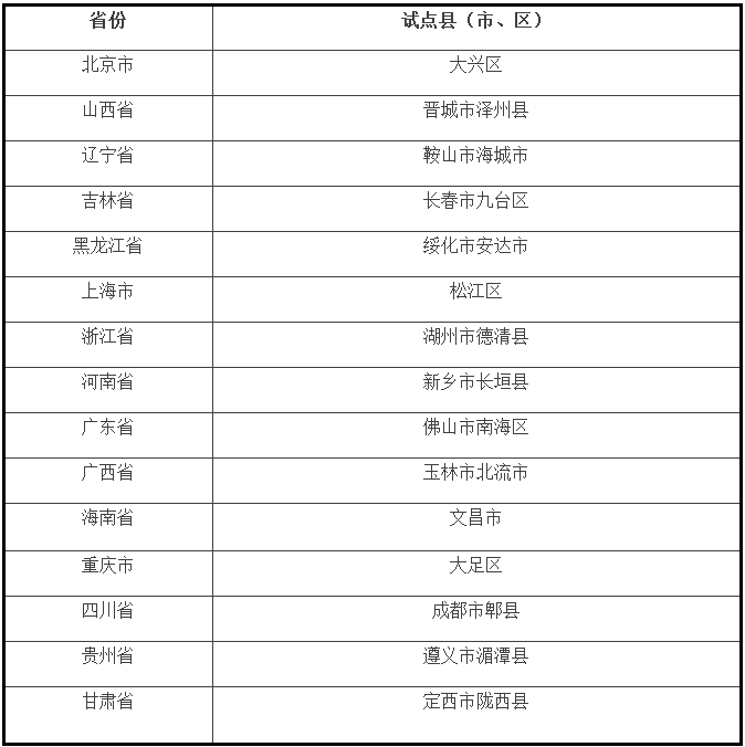 哪些地区将开展试点?