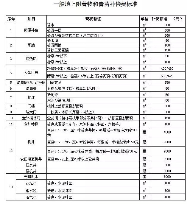 二、地上附着物补偿标准。