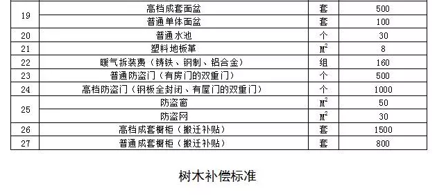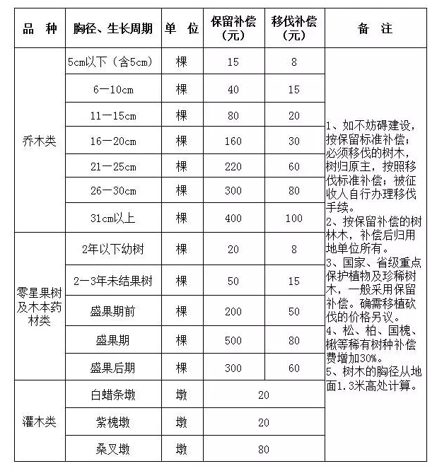 三、经济林补偿标准参照省林业厅公布的标准执行。
