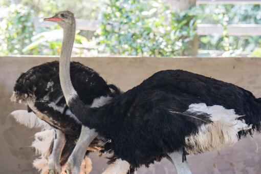 非洲黑鸵鸟是在南非利用蓝颈鸵鸟等原始品种杂交后长期选育形成的一个品种。非洲黑鸵鸟体型较小、腿短、颈短、体躯丰厚,性情温驯,羽毛密集,分布均匀,羽小枝较长,便于饲养管理。其产蛋性能优于蓝颈和红颈鸵鸟,一般4—5岁的雌鸟年均产蛋100枚,优秀者可达150枚。