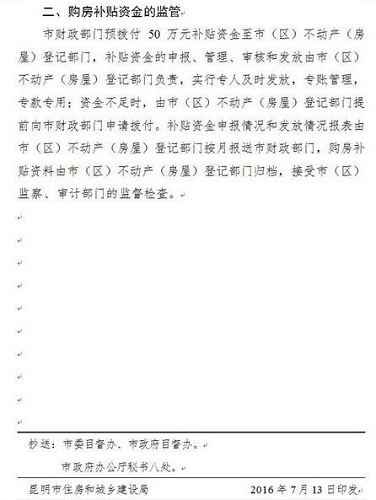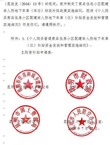 8月10日,昆明市住建局发布了《个人购买商品住房小区配建非人防地下车库(位)补贴资金发放和管理实施细则》(以下简称“细则”),细则内容显示:凡2016年3月1日起至2017年3月1日止,凡购买昆明市(县)行政辖区范围内开发公司出售的商品房住宅小区配建的非人防地下车库(位)的,办理相关产权证后按证载建筑面积给予每平米160元的补贴,补贴面积最高不超过30平米(含30平米)。政策原文如下: