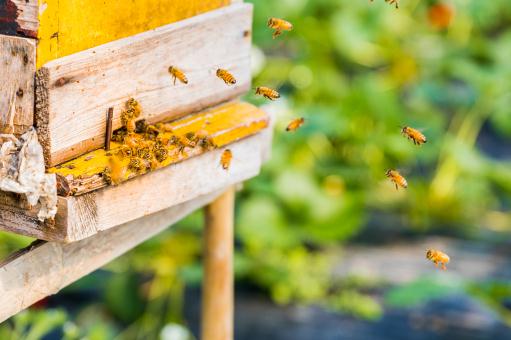 附:蜜蜂(属膜翅目、蜜蜂科。体长8—20毫米,黄褐色或黑褐色,生有密毛。头与胸几乎同样宽,触角膝状,复眼椭圆形,有毛,口器嚼吸式,后足为携粉足。两对膜质翅;前翅大,后翅小,前后翅以翅钩列连锁。腹部近似椭圆形,体毛较胸部为少,腹末有螯针。一生要经过卵、幼虫、蛹和成虫四个虫态。