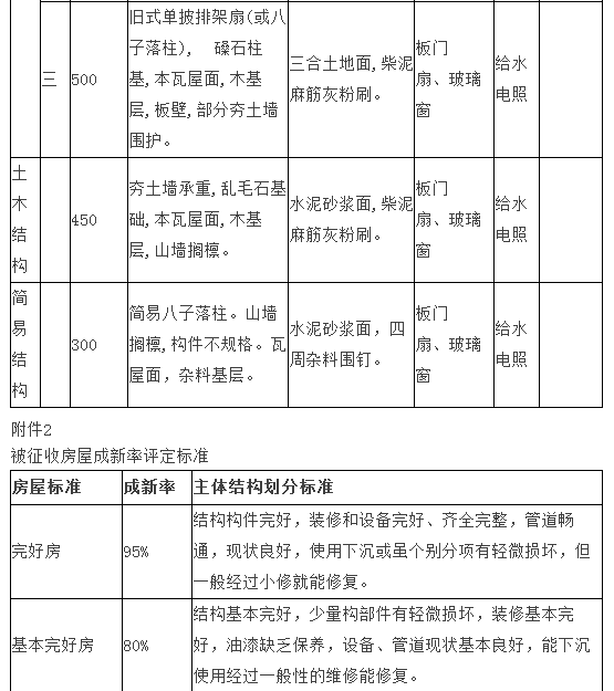 2.被征收房屋成新率评定标准