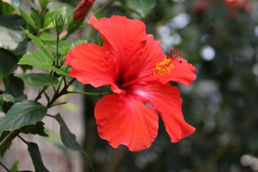 移入温室后,浇水量要减少,每次应等叶片微微发蔫再浇水,以促使扶桑开花。
